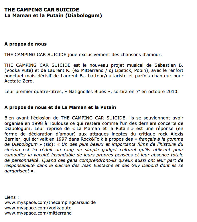 The Camping Car Suicide s’est attaqué à la reprise de "La Maman Et La Putain"